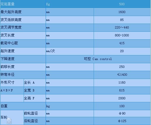 二、CTY-B前移式手動(dòng)叉車基本參數(shù)如下: