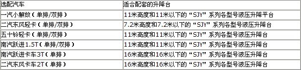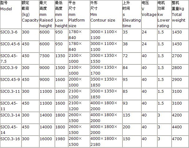 二、SJC車載式升降平臺(tái)參數(shù)如下: