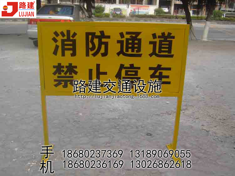 版式護(hù)欄,角鐵告示牌1000*1000mm,黃色,貼黑色膜,“消防通道,禁止停車”