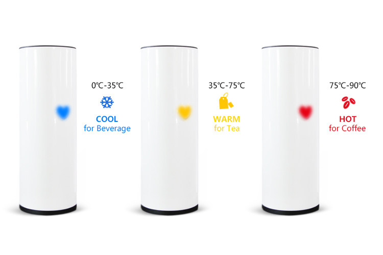 通過三種不同的顏色來提醒使用者杯中的水是否適合喝下,避免被燙著的尷尬,