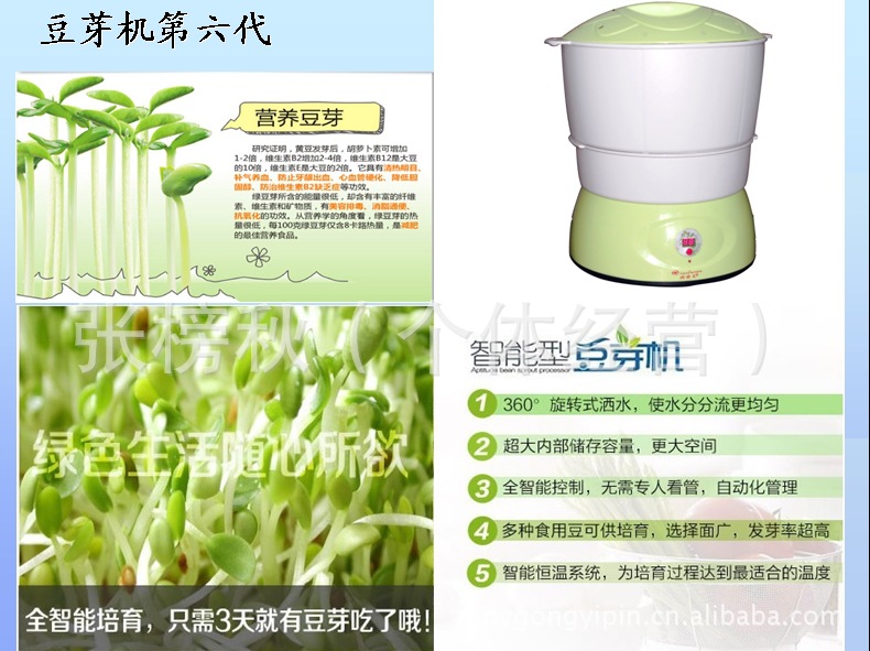 外觀時(shí)尚,操作簡單,安全耐用,電腦自動控制調(diào)節(jié)發(fā)芽濕度,無需人工看管,3—4天即可食用。是家用、送禮的選者
