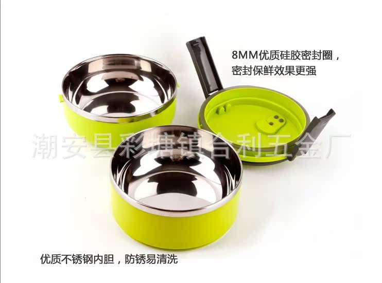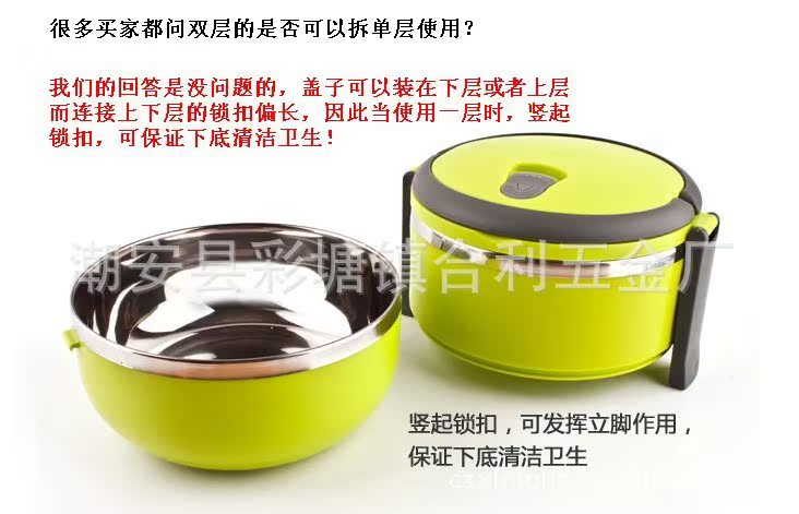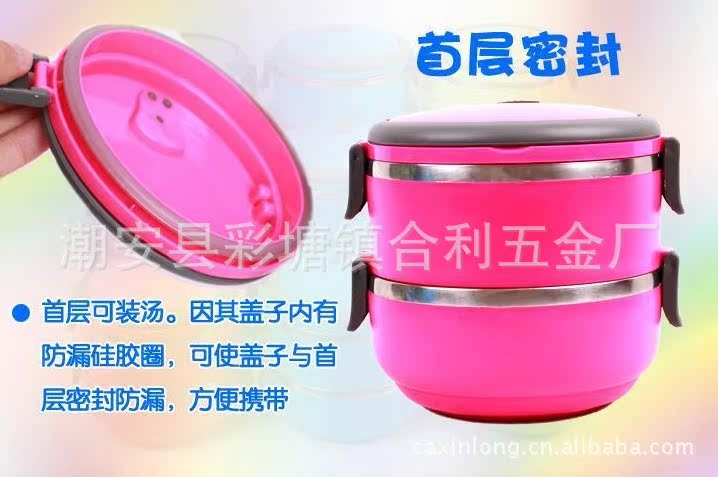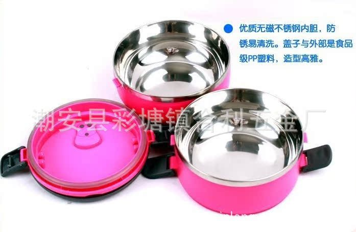 圓形雙層飯盒 不銹鋼內(nèi)膽 PP材料外層 保溫密封型 防滲漏