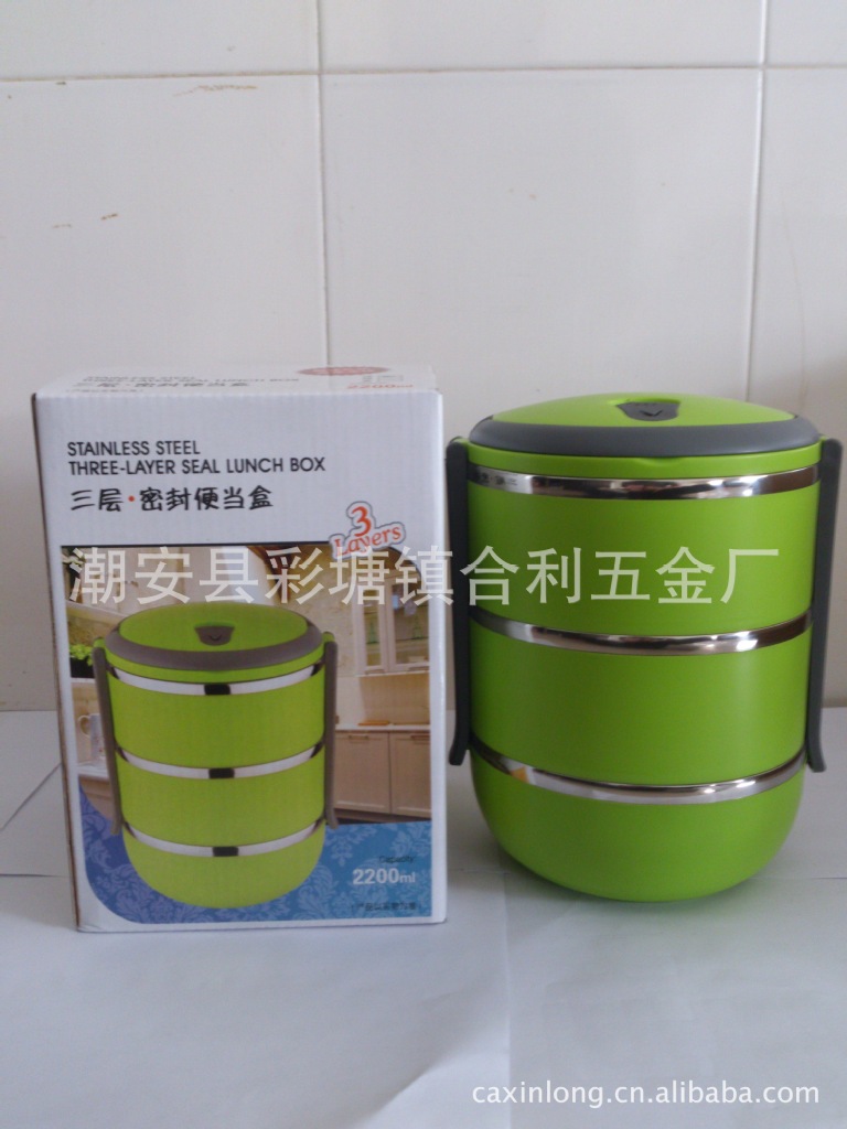 保溫飯盒 不銹鋼飯盒 密封保鮮盒 彩塘不銹鋼 便當(dāng)盒 三層