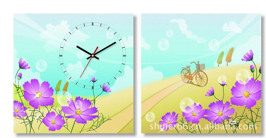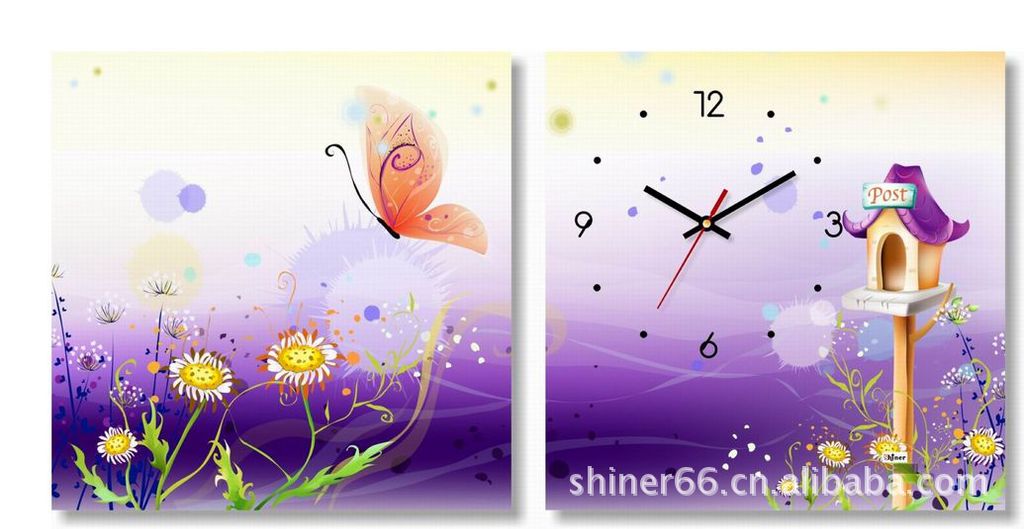 兩聯(lián)無(wú)框畫/墻壁掛鐘/時(shí)尚家居裝飾畫鐘
