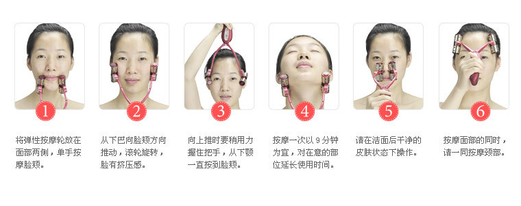 每天使用2-3次,每次9分鐘,可以單手使用瘦臉風(fēng)火輪在臉部從太陽穴一直到下巴部位來回滾動(dòng),也可以針對(duì)額頭部位的皺紋和頸部的皮膚按[mo]。如果想要效果更顯著,可以增加使用次數(shù)。