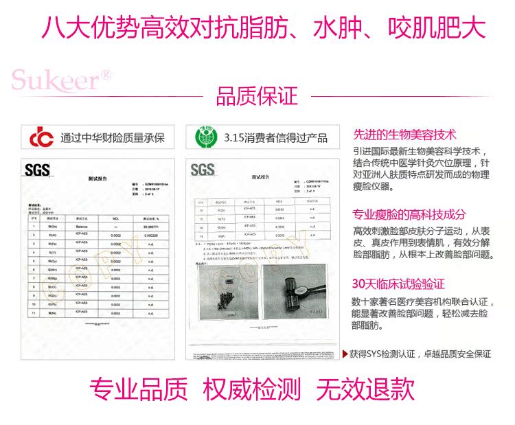Sukeer塑可兒品牌,為深圳市嘉寶燊商貿(mào)有限公司創(chuàng)立。塑可兒瘦臉風(fēng)火輪套裝是網(wǎng)絡(luò)熱銷的人氣品牌產(chǎn)品,專為期望瘦臉的人士設(shè)計(jì)。具有瘦臉、去除眼角皺紋以及鍛煉表情肌、減緩皮膚老化的美容功效,深受眾多女性青睞和關(guān)注。Sukeer塑可兒產(chǎn)品皆由精細(xì)工藝、嚴(yán)謹(jǐn)管理所生產(chǎn),產(chǎn)品成分安全,并且對(duì)人體無任何副作用,給予顧客卓越品質(zhì)安全保證。