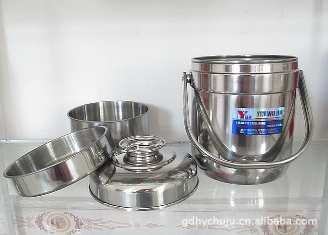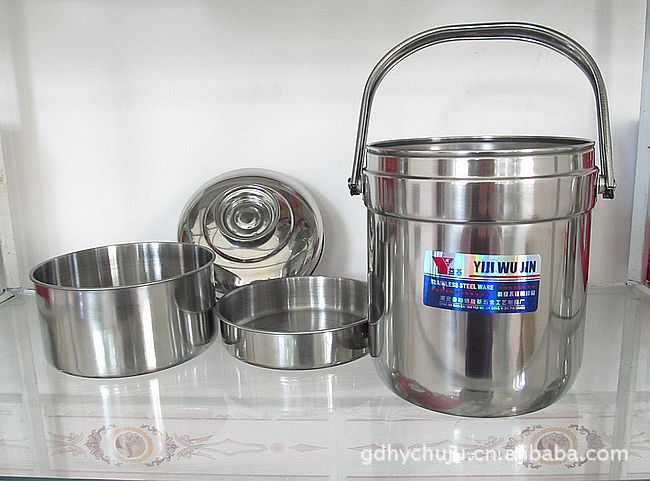 5.這是一款簡(jiǎn)單實(shí)惠的不銹鋼提鍋,產(chǎn)品使用的是單層不銹鋼制作而成的,可以滿足30分鐘內(nèi)的保溫時(shí)間,非常適合送餐使用,是個(gè)簡(jiǎn)單好用又實(shí)用的飯桶哦,有兩個(gè)食格配備,可以組合成三層使用。外表使用拋光處理,不易玷污哦。