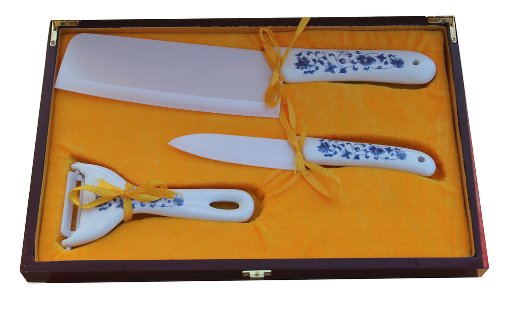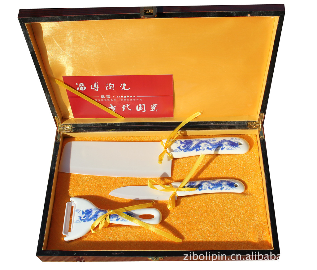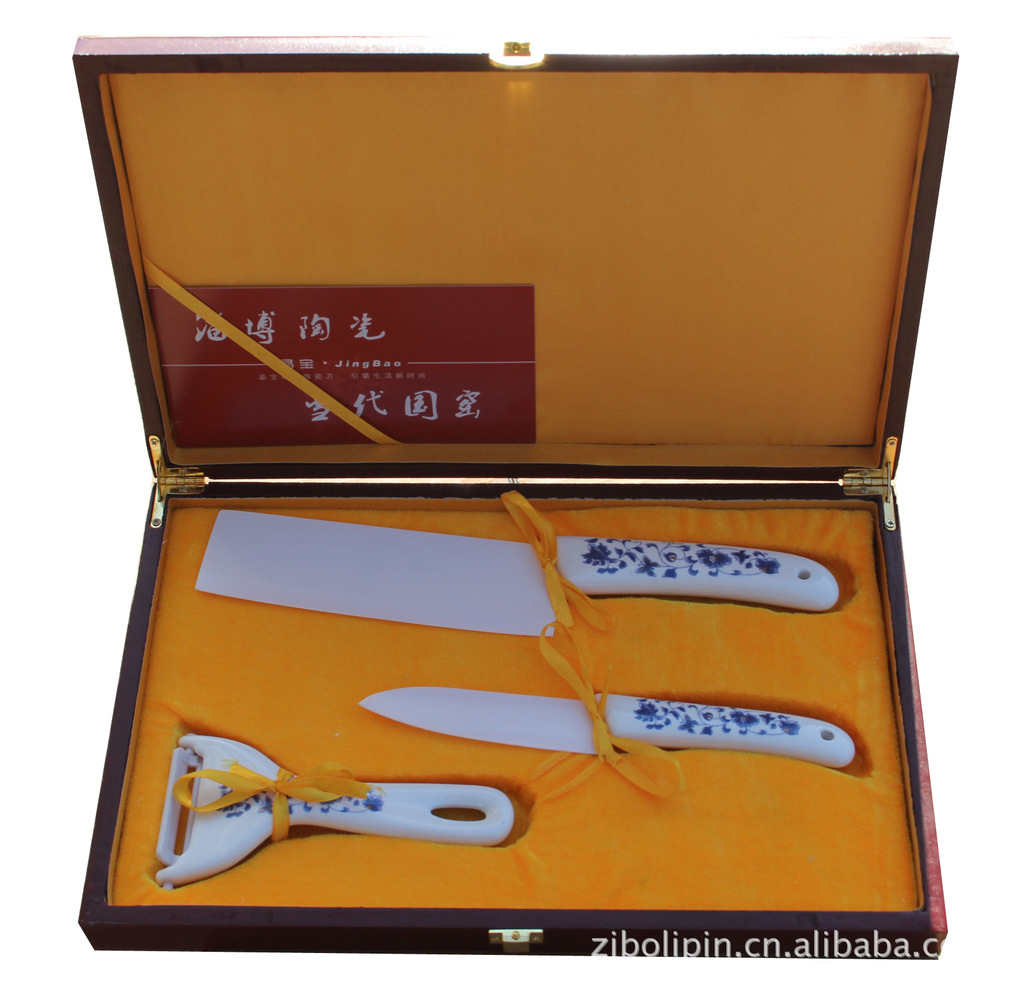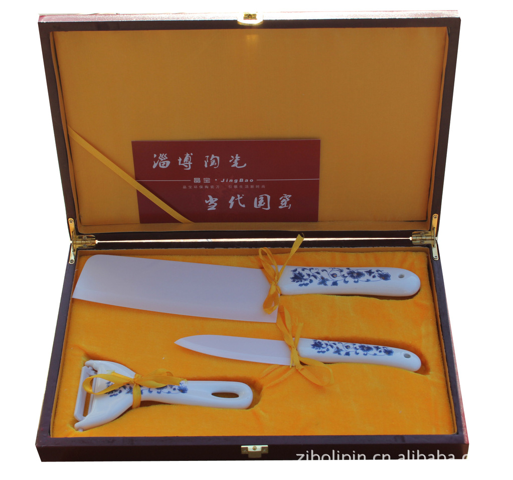 金星青花陶瓷刀3件套.高檔禮品盒.6寸菜刀.4寸水果刀.削皮器