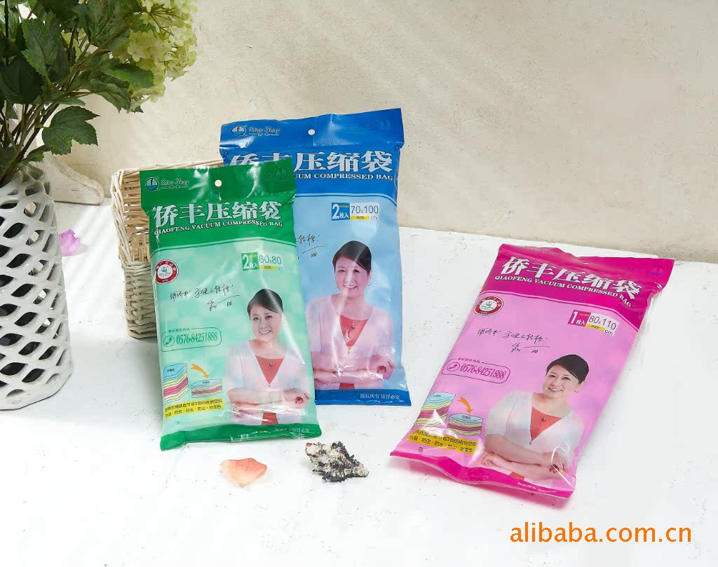 僑豐真空壓縮袋,9絲精品裝(也稱(chēng)加厚版),高檔PE PA復(fù)合,可使用多年,無(wú)論在厚度上、柔韌性上、反復(fù)使用時(shí)間上,都是其他品牌的同類(lèi)壓縮袋所無(wú)法比擬的。