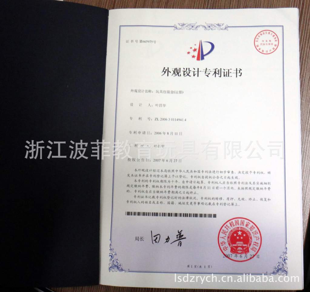 產(chǎn)品專利證書: