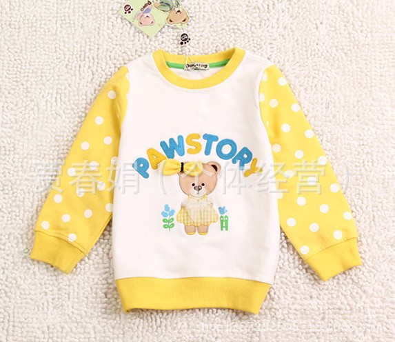 韓版童裝14春款paw小熊外貿(mào)專柜印花點(diǎn)打底衛(wèi)衣兒童長袖T恤814741