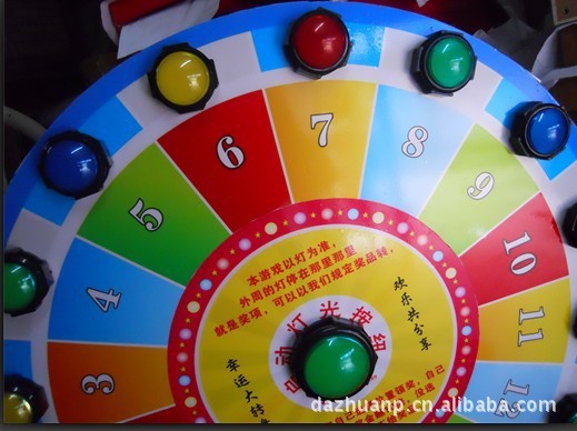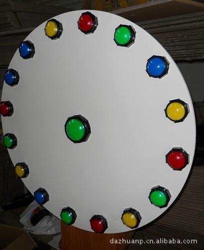 此轉(zhuǎn)盤燈盤大80cm,總有燈17個,邊上一圈16個,中間一個啟動指示按鈕燈,可以隨機(jī),可以控制出獎。