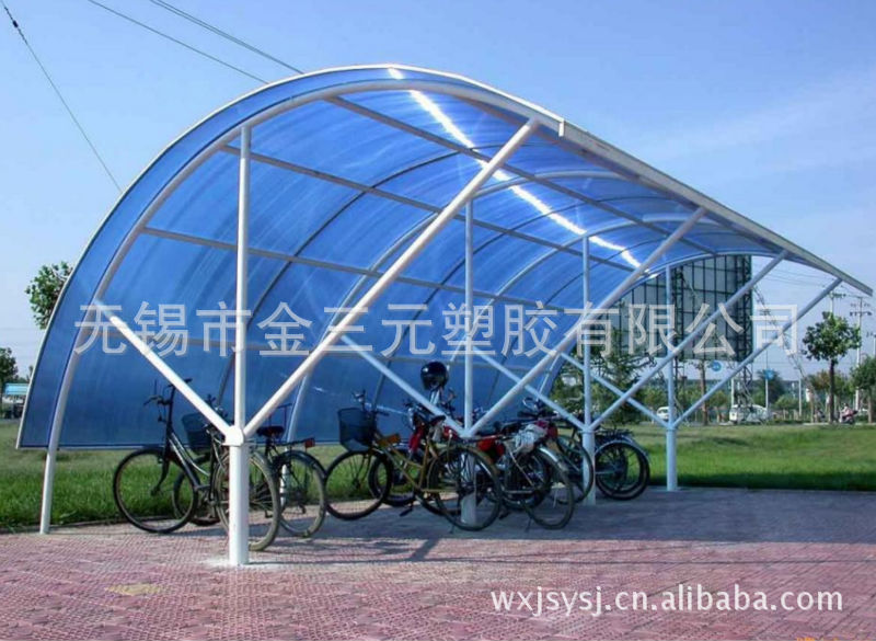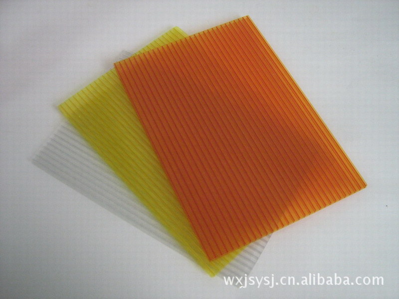 陽光板是以聚碳酸塑料為原料經(jīng)熱擠出工藝加工成型的透明中空板。是國(guó)際上廣泛采取的一種高強(qiáng)度、透明、隔音、節(jié)能的新型優(yōu)質(zhì)裝飾材料。相比夾膠玻璃,夾絲玻璃,鋼化玻璃,陽光板和耐力板更具輕質(zhì)、耐候、超強(qiáng)、阻燃、隔聲的優(yōu)良性能。