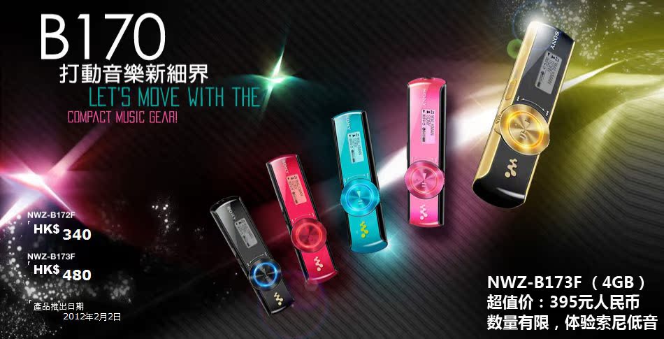 為年青音樂(lè)愛(ài)好者推出 Walkman MP3音樂(lè)播放機(jī) 系列。Walkman MP3固然而知音質(zhì)出眾。新系列提供別具型格的顏色選擇, 火辣紅,冷霜金,炫魅黑,童話粉,觸目的顏色盡情展現(xiàn)個(gè)性