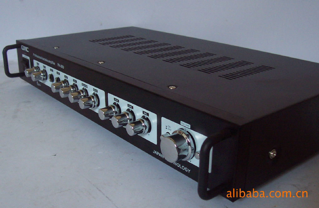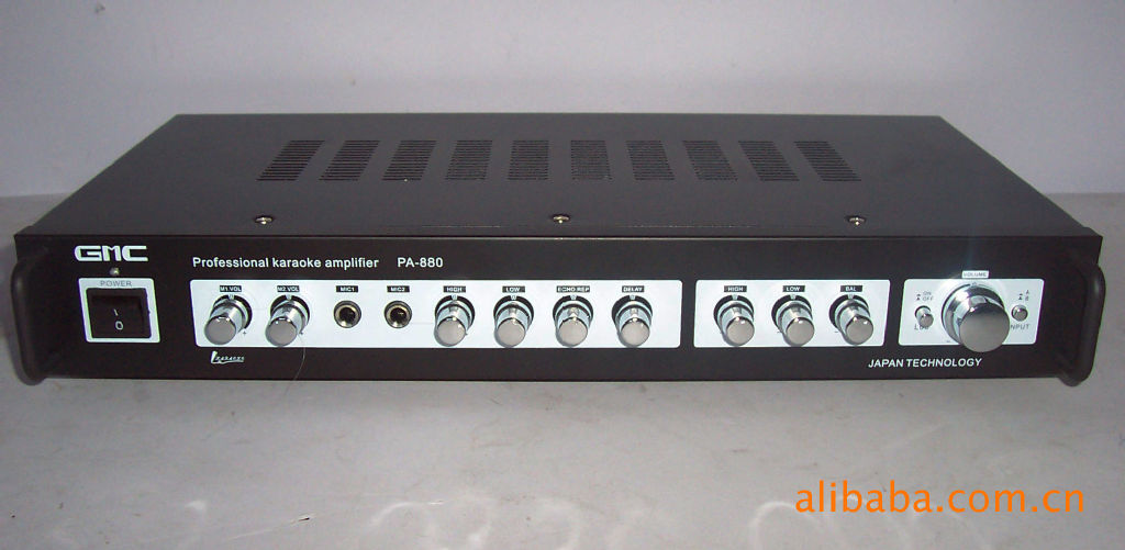 本功放為交直流兩用專業(yè)卡拉OK功放機,全新原包裝、品牌:GMC、本機采用高效能大功率環(huán)形變壓器、大功率管、功率強勁、音質優(yōu)美、可推8寸以及以下任何舞臺音箱和落地音箱。輸出峰值功率:150W,阻抗:4-8歐、后面?zhèn)溆兄兄铆h(huán)繞音箱接口,可接中環(huán)音箱。雙路話筒輸入、每一路話筒均獨立調節(jié)、話筒效果逼真自然。配備等響度開關,可提升音質,后面板備用直流12V接口,適合無電地區(qū)。外形尺寸(mm):430寬x250深x73高、詳情QQ:95、電話: