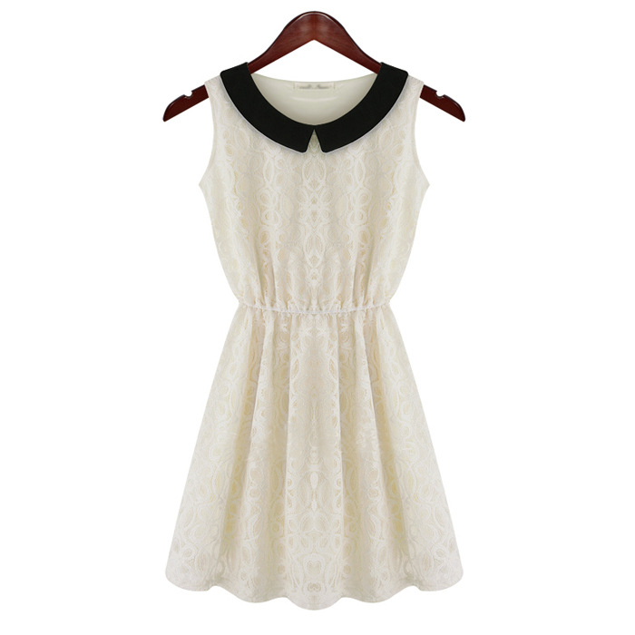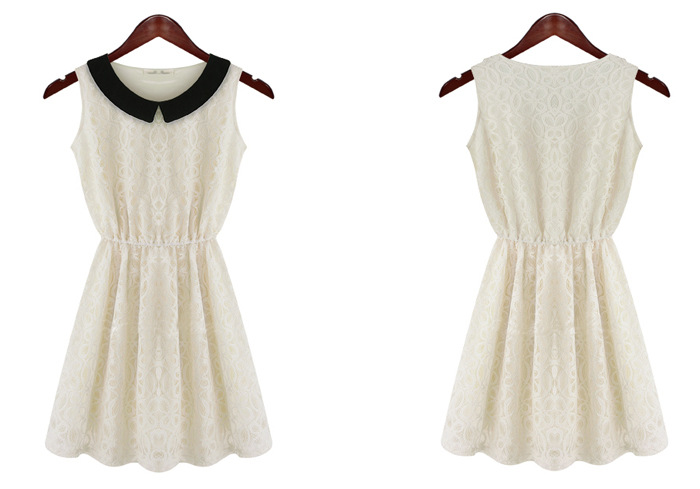 2013新款 收腰蕾絲鉤花娃娃領(lǐng) 無袖連衣裙