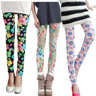 2013秋裝新款女士韓國時(shí)尚百搭 炫彩涂鴉牛奶絲印花 打底褲批發(fā)