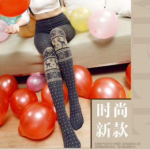 批發(fā) 2013韓版秋冬款羊毛 小鹿雪花打底褲襪女保暖連褲襪踩腳褲
