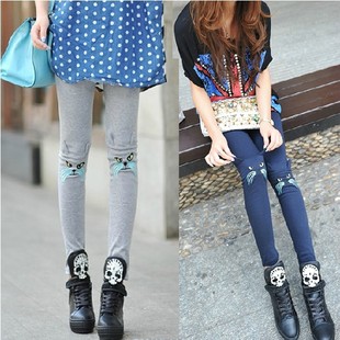 批發(fā) 韓國刺繡小貓打底褲 女士長褲秋冬九分顯瘦秋裝小腳鉛筆褲子
