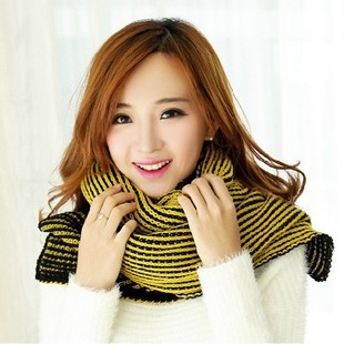 批發(fā) 韓國(guó)秋冬新款情侶圍巾 條紋雙色圍脖披肩 針織毛線保暖圍脖