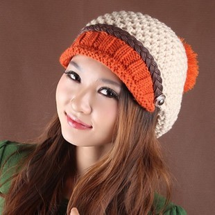 2013秋冬季新品韓版彩色球球毛線帽 卷邊皮帶邊雙色女士帽子批發(fā)
