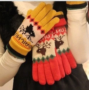 冬季新品 可愛小鹿雙層加厚保暖加長(zhǎng) 五指分指男女情侶手套 批發(fā)