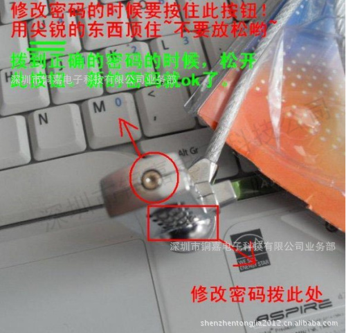 使用時(shí)只要把鋼繩固定于固定物上,鎖身從繩套中穿出,接到筆記本的鎖孔,鎖住鎖頭即可保證筆記本安全,防止主人沒注意時(shí)筆記本被別人拿走的情況。