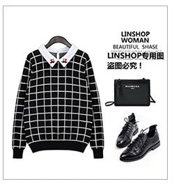 【名稱】韓版絨線針織格菱紋彈力毛衣