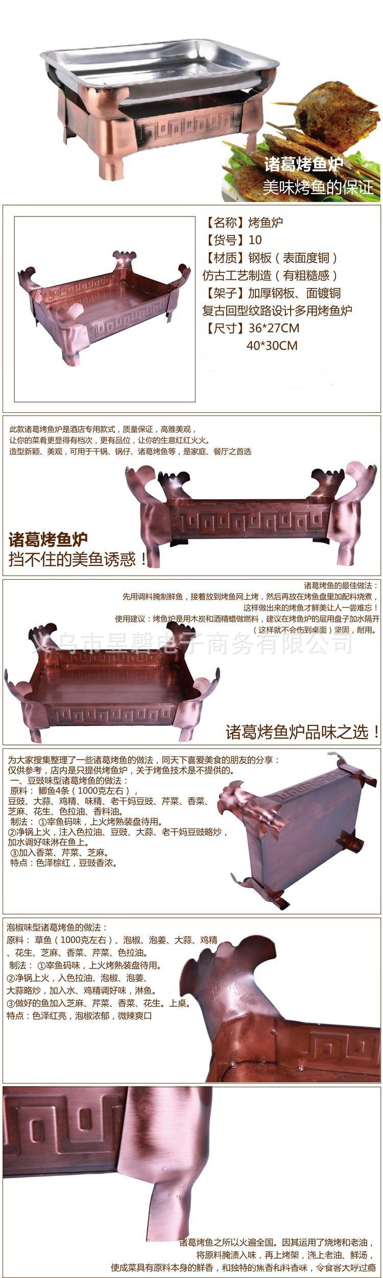 架子:加厚鋼板、面鍍銅 復(fù)古回型紋路設(shè)計多用烤魚爐