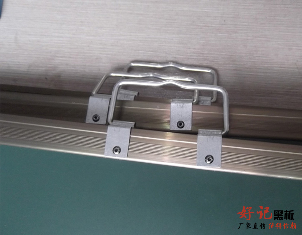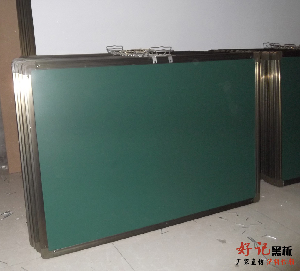 “好記”黑板采用本廠專用進口涂層烤漆鋼板,用獨特配制膠水與泡沫板或瓦楞板,再加背面鍍鋅板共三層固定好,用重物壓二十四個小時,平整后四邊用鋁合金【茶色,銀白色】包邊打好鉚釘,四角用ABS工程塑料連接,按照尺寸大小配套可移動鋼架,可定做各種規(guī)格,也可配套不銹鋼架,鋁合金此款經(jīng)久耐用,美觀實用。