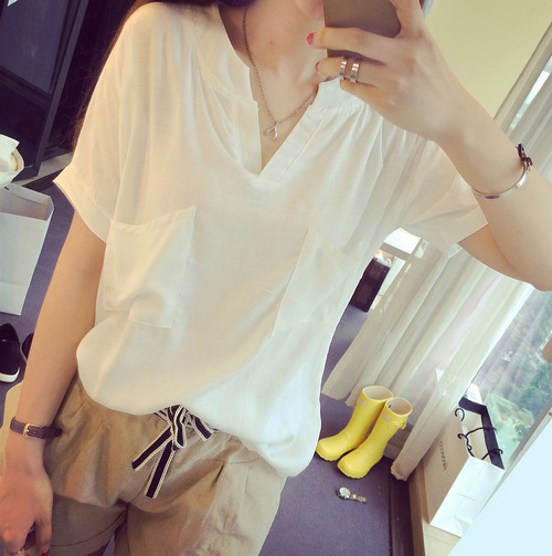EDITOR NOTES/寶貝描述:此款休閑寬松設(shè)計(jì),展現(xiàn)你的悠閑舒心,自由隨意,簡(jiǎn)單而大方的V領(lǐng),展現(xiàn)你優(yōu)美的脖頸,胸前大兜兜裝飾,讓衣衣增添幾分街頭潮流,慵懶的時(shí)尚風(fēng)格,胖瘦都能穿,喜歡的不要錯(cuò)過噢!