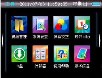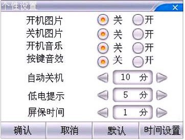 (2)系統(tǒng)設(shè)置:系統(tǒng)參數(shù)設(shè)置選項,可以設(shè)置系統(tǒng)時間、自動關(guān)機、屏保時間、按鍵音效、開機音樂等參數(shù)。