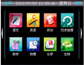 分為六界面,英語、詞典、全科、強化、多媒體、工具