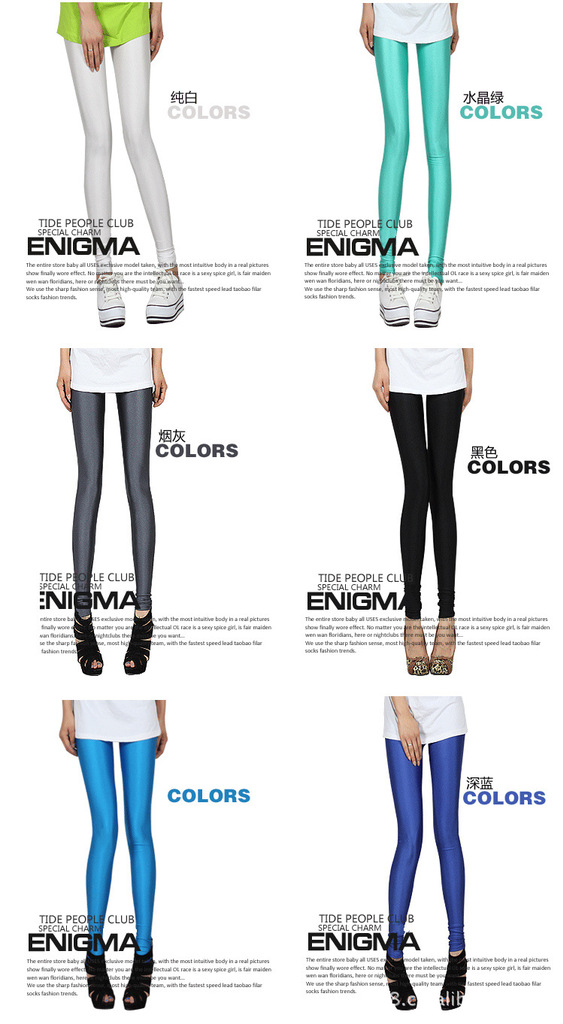 2012新款 春夏女裝HM原單彩色熒彈力光打底褲 高彈寬腰女褲 批發(fā)