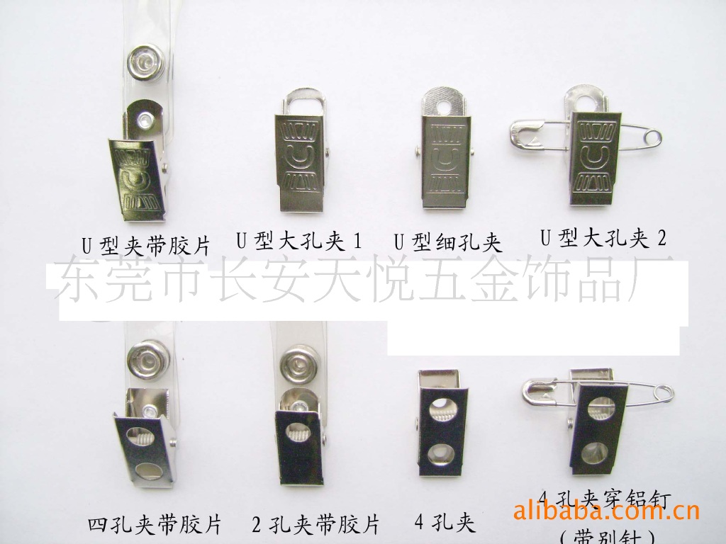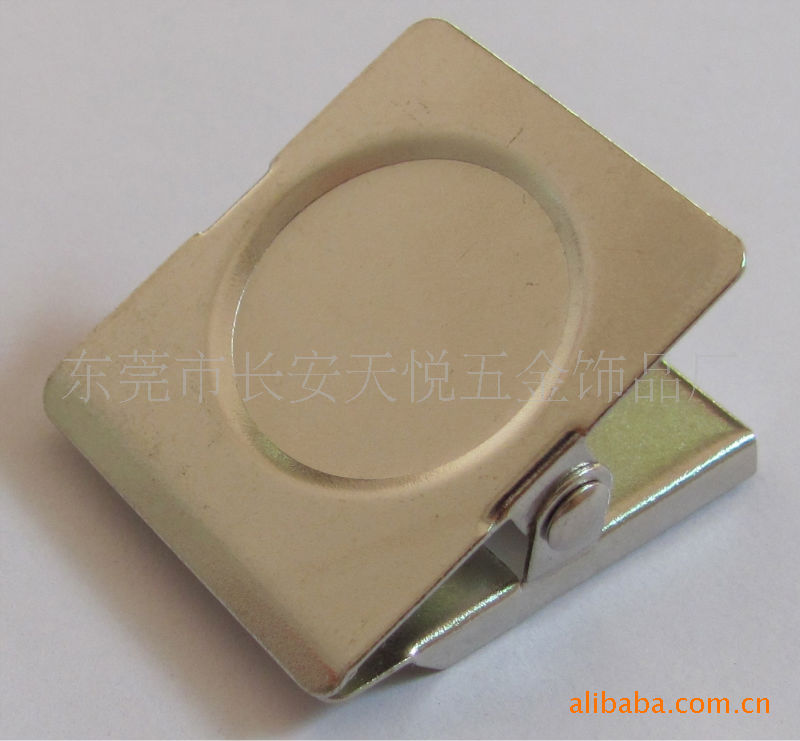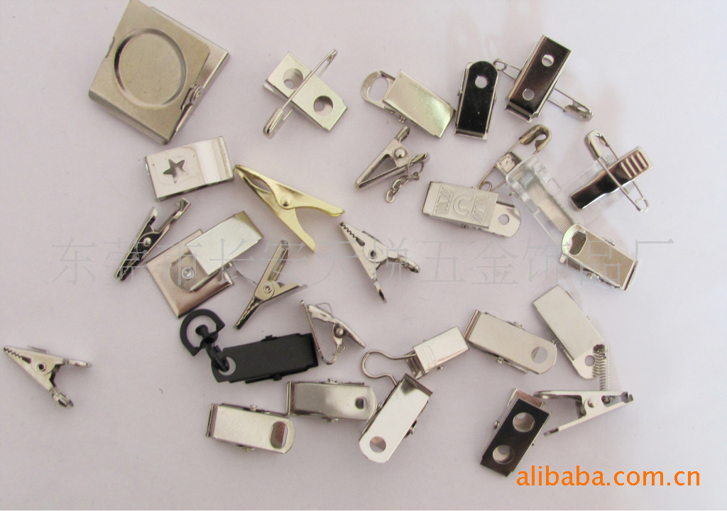 該為夾子類產(chǎn)品。材質(zhì)可分為鐵、不銹鋼、銅片材以及合金等。片材采用沖壓工藝成型,表面可壓制或蝕刻各種LOGO圖案,也可印刷各式彩色LOGO。合金材質(zhì)的則采用鑄造成型,產(chǎn)品上面同樣可以直接鑄出LOGO,也可以采用雕刻或印刷等工藝制作。表面可電鍍成各種顏色?,F(xiàn)有多種款式的夾子可供客人挑選,同時也可以按照客人的圖紙或樣板進(jìn)行開模生產(chǎn)。由于鐵材質(zhì)電鍍較容易變色和生銹,夾子材質(zhì)可改為銅或不銹鋼。使用時盡量避免直接與酸、堿液接觸,以增長使用時間。歡迎各位新老客戶垂詢定購。