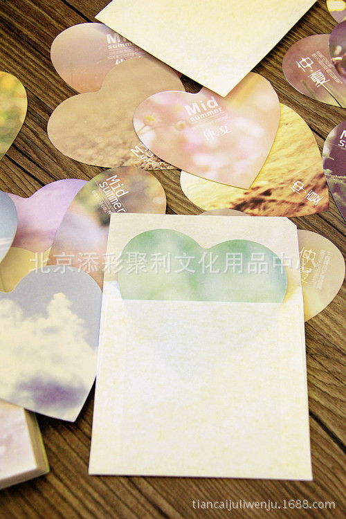 精致賀卡 小清新心形留言卡 diy生日祝福小卡片 心系仲夏愛心賀卡