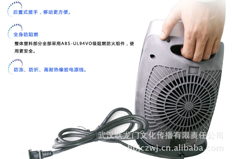 ★ 高熱,低熱,涼風三種模式選擇,特有涼風設(shè)計,用來冷卻PTC的溫度,可有效保護PTC的壽命(夏天不可作風扇用)。