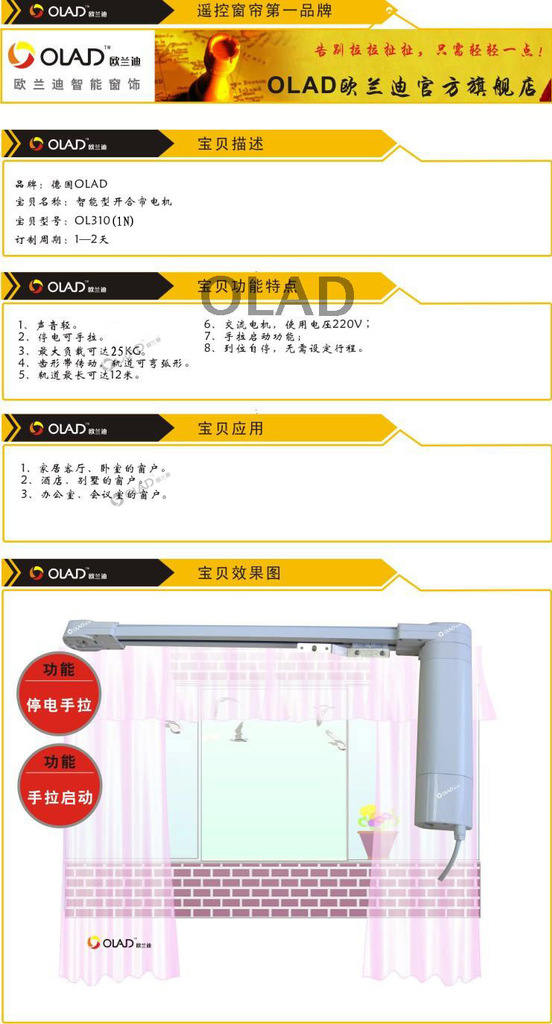 OLAD歐蘭迪智能遙控電動窗簾* 尚雅系列-OL310(1N)手電兩用開合簾靜音電機(jī)