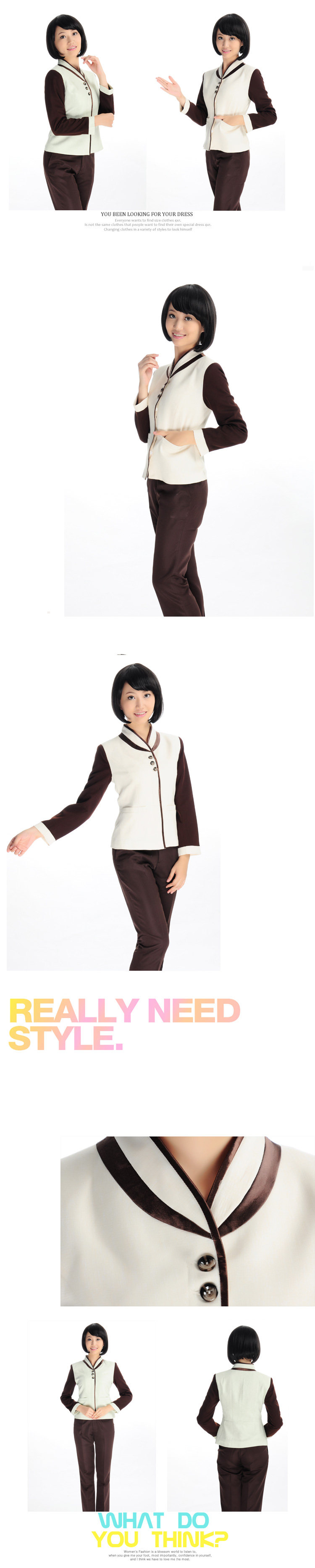商品信息名 稱:BJ523面 料:精品形象呢(有里布)適合季節(jié):秋冬季(冬季里面需穿保暖性好的衣物)試穿尺碼:女模身高168CM 體重95斤 尺碼L(女裝碼偏小)特別說明:此款為上衣的價格哦,模特所穿褲裙本店均有銷售。