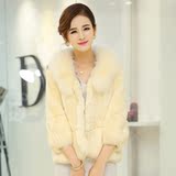 2014秋冬新款海寧短款狐貍毛領(lǐng)修身兔毛皮草女裝特價(jià)清倉(cāng)包郵