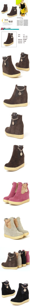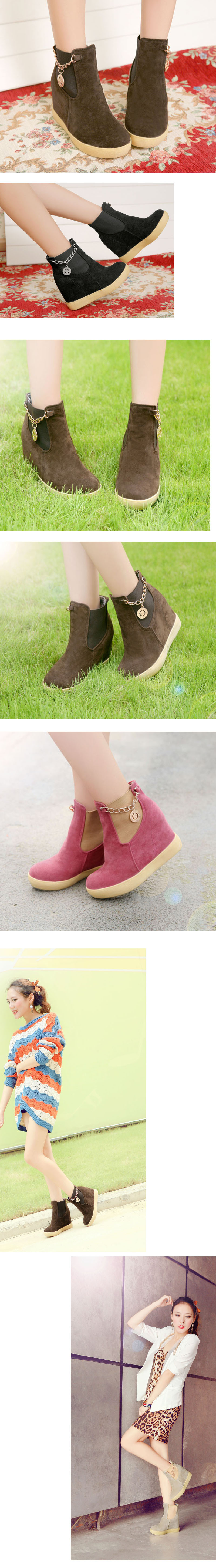 冬日可愛乖巧內(nèi)增高拼色保暖短靴金屬吊墜磨砂靴子