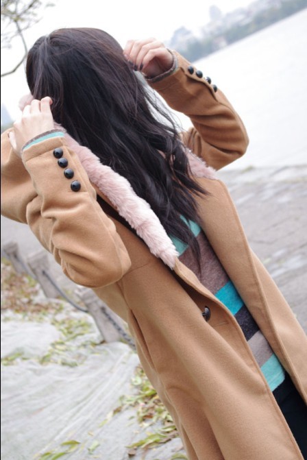 2011 兔毛領毛呢大衣 冬裝加厚呢料大衣 女式風衣 爆款