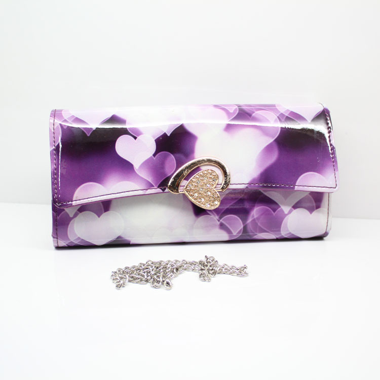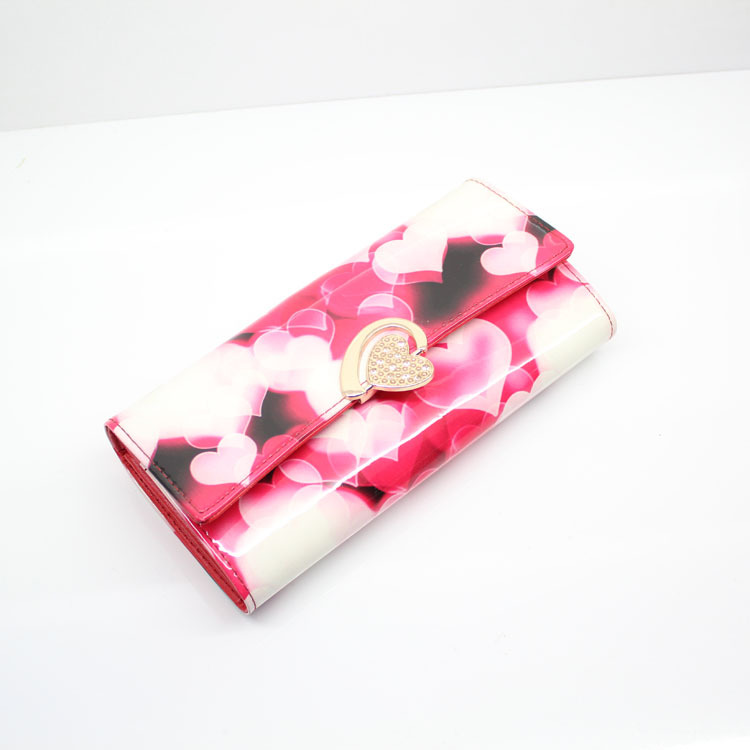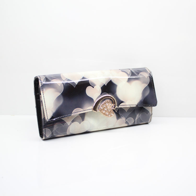 新款可愛風亮皮漆面女式搭扣內(nèi)鋼夾錢包PU皮女士釘扣長款錢夾批發(fā)