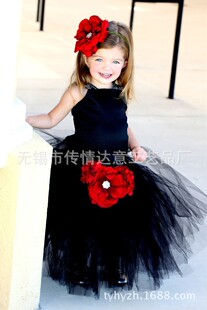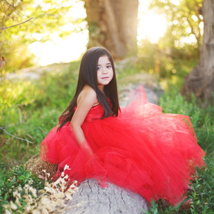 Ellie's Bridal 歐美原單新款 枚紅色多層滌綸帶花童裙 公主裙子