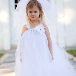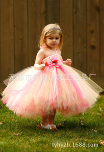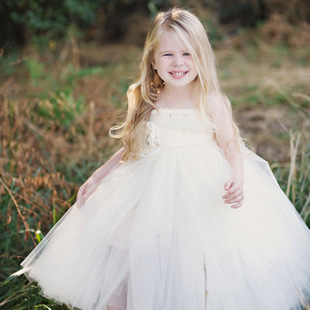Ellie's Bridal 2014爆款粘花花童下裙 婚紗裙 節(jié)日宴會(huì)表演裙