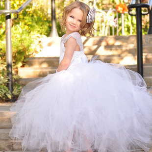 Ellie's Bridal 歐美原單新款 白色繡珠高端定制花童宴會(huì)公主裙