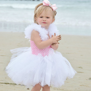 Ellie's Brida夢幻白色羽毛層疊裙 兒童晚禮服 婚禮服 花童裙