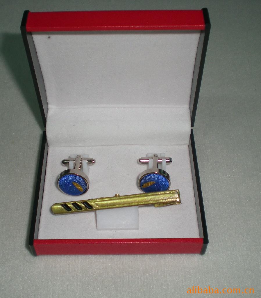 高檔精美袖扣和領(lǐng)帶夾盒子,外包是黑色絨布。