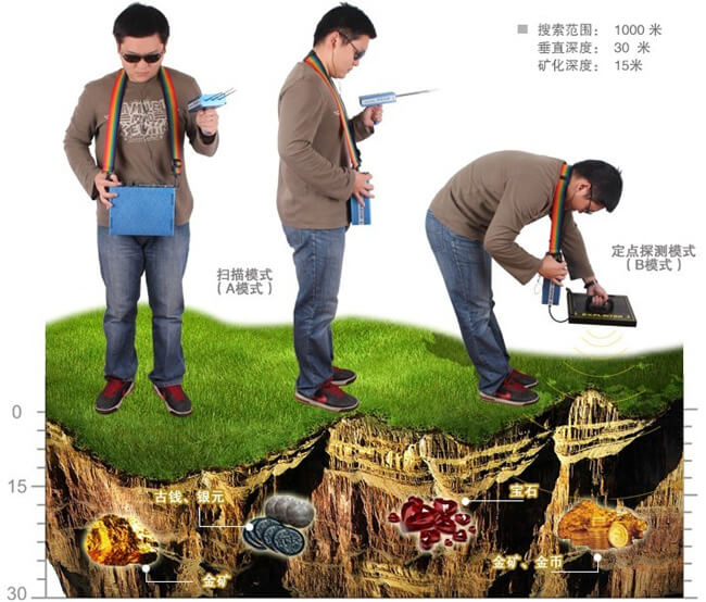 EXPLOITER開拓者-II黃金版具有A/B兩種工作模式。其中A模式為大范圍超深度掃描接收搜索定位模式,B模式為具體確定目標物體的定點探測位置模式。