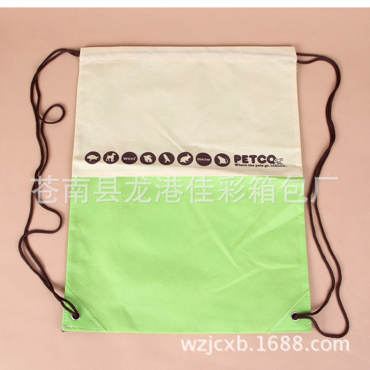束口袋的袋身材料,主要使用無紡布、棉布、尼龍布等軟性材料,也有使用亞麻布材料。無紡布束口袋,價(jià)格相對(duì)便宜,制作簡單,廣告效果較好;但是因?yàn)闊o紡布固有的特點(diǎn),不能長久使用。無紡布在自然情況下,使用時(shí)間也就是三五年。無紡布束口袋的價(jià)格,主要是根據(jù)其規(guī)格、布料克重、印刷要求、對(duì)繩子的要求等來確定。